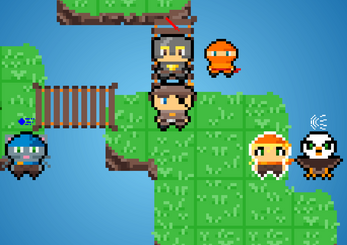 A deckbuilding tactics game where you grappling hook your way around floating islands.